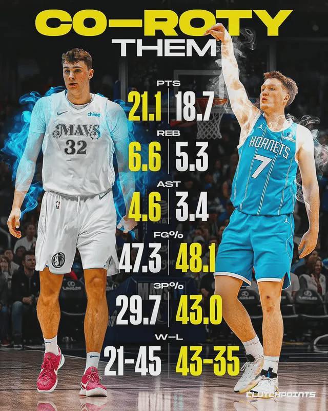 美媒Hoops感叹道:“东契奇新秀赛季也是场均21.2分,三项命中率是43%、33%和71%。”